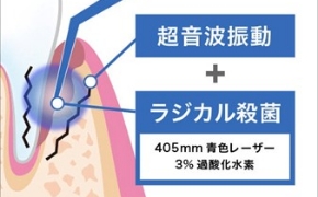 過酸化水素と青色レーザーを用いて強力な酸化力を持つヒドロキシラジカルを生成し、歯周ポケット内の細菌を99.99%殺菌します。